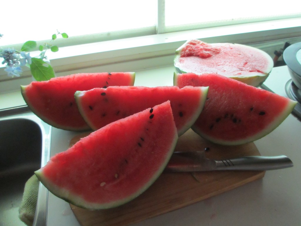 先日も、朝市で手に入れたばかりの瑞々しいスイカをジュースにしたり、シャキシャキの新鮮な夏野菜を使ってサラダを作ったりしました。