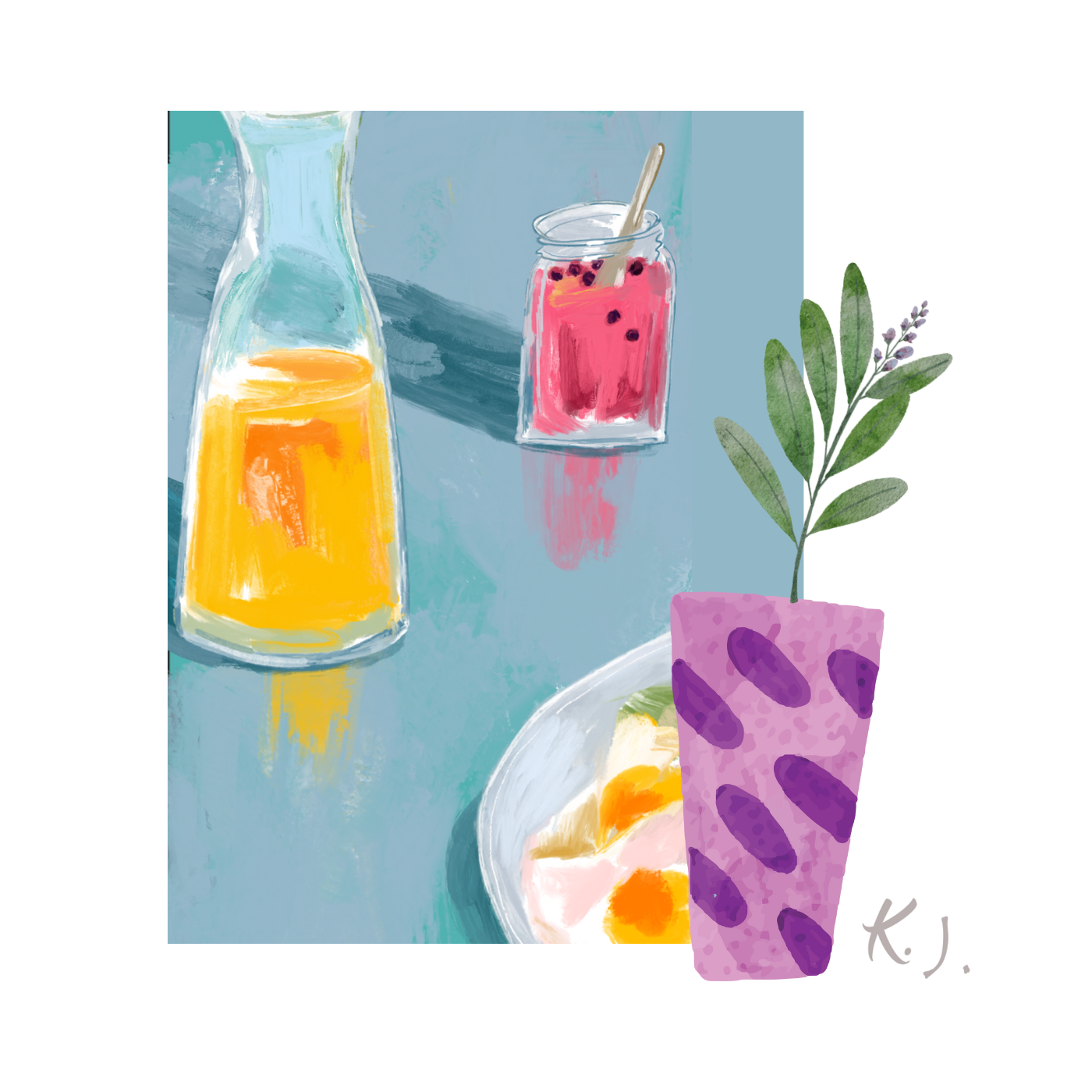 自然の木々や葉、花の移ろい、そして女性ならではの感性で描く日常のワンシーン。 お茶の時間、ヨガでリラックスする時、料理をする時間、お散歩や本を読む時など… 心安らぐ癒しの瞬間をイラストにしています。
